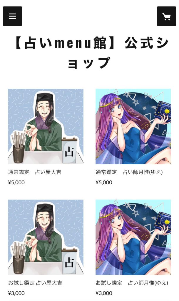 (上の画像、またはこちらをタップしていただくと、「STORES・占いmenu館ショップ」にアクセスします)